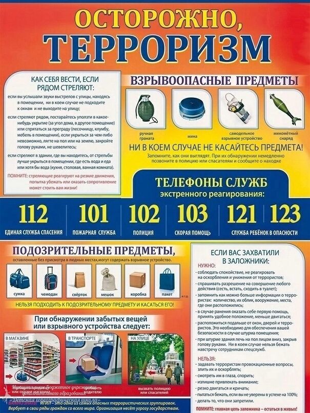 • Случайно узнав о готовящемся теракте, немедленно сообщите об этом в правоохранительные органы.