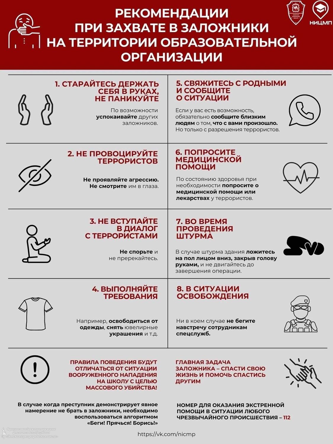 - Беспрекословно выполнять требования террористов, если они не несут угрозы вашей жизни и здоровью.